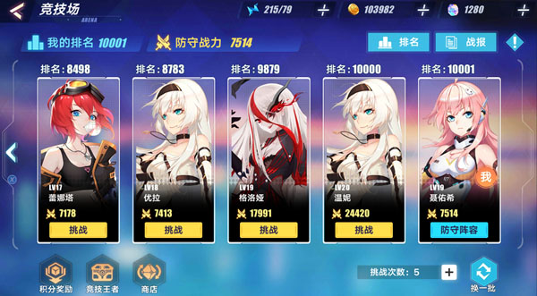 选择战力低于自己的对手进行挑战,从而提高竞技排名。