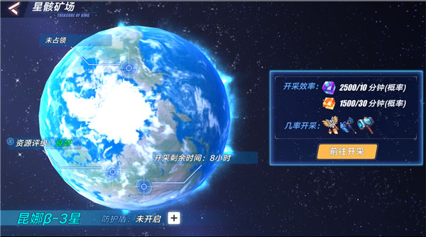 ② 开采剩余时间:每个星球开采需要的总时长都是8小时,开采中的星球点击可以查看剩余开采时间。