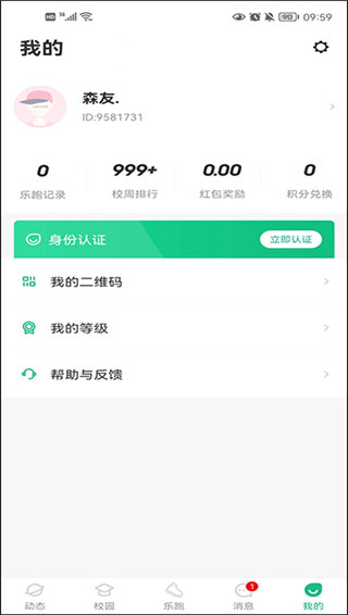 4、通过身份验证,用户每天积累的跑步频数会如实的记录在校园的排行榜中,并且还有红包奖励。