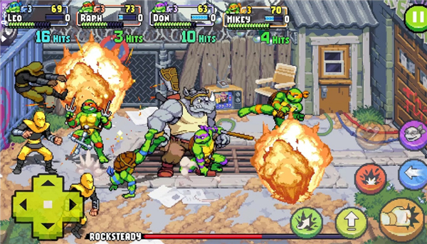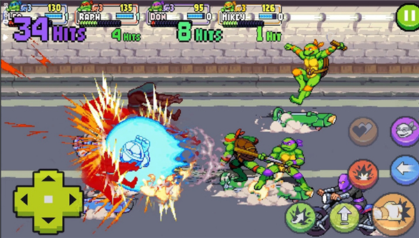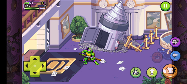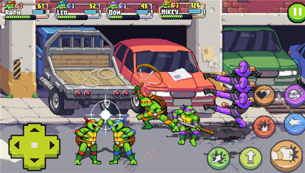 忍者神龟施莱德的复仇是一款基于经典忍者神龟系列的角色冒险类游戏,最近推出了手机版,带来了80年代风格的精彩横版动作游戏体验。在游戏中,玩家将加入莱奥纳多、拉斐尔、多纳泰罗和米开朗基罗等熟悉的角色,共同展开惩恶扬善的冒险。游戏中,玩家将扮演这些力量强大、技艺精湛的绿色忍者,一同挑战朗格和施瑞德的邪恶计划,重现《忍者神龟》中的经典格斗场景。