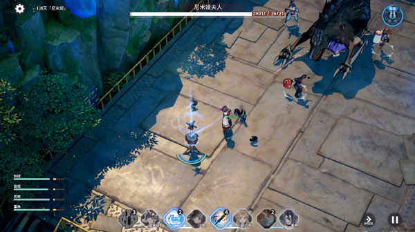 4、例如在一场boss战中,boss会交替使用多种技能攻击玩家,如扇形技能、召唤小怪、或暂时离开战场在边缘释放范围技能攻击玩家。根据角色的不同定位,玩家需要在前线抵挡伤害、在侧面进行近战输出,或在后方提供辅助和远程输出。玩家可以带领最多四名角色进入战斗。