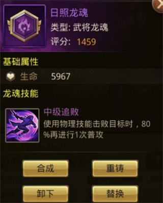 日照龙魂:可增加基础属性,并附带一到两个低、中级兵法技能