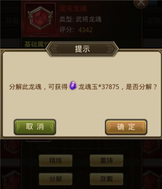 分解龙魂可获得龙魂玉,合成失败后的龙魂也将分解成龙魂玉。