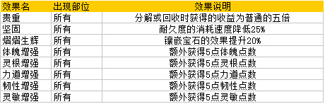 等级≥40级的野外装备和铸造装备、神器,有可能出现被动效果;被动效果并不会在所有装备部件中出现,大多数被动效果是出现在固定的装备部件中