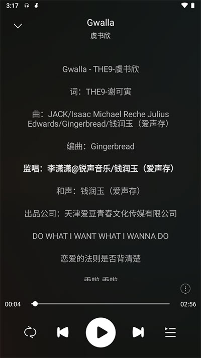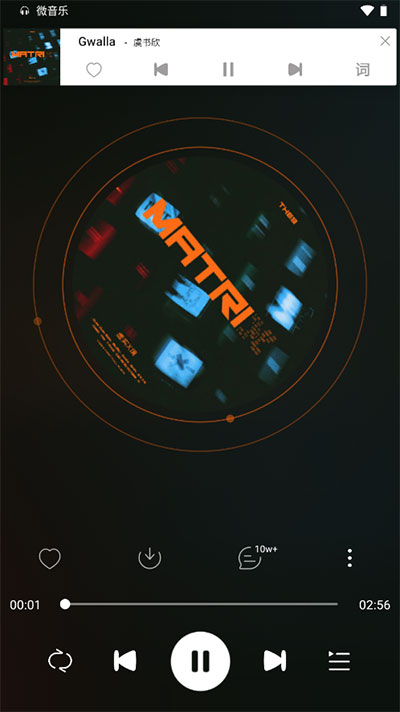点击屏幕中央切换至歌词界面,外语歌词提供翻译选项