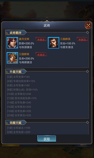 武将间的羁绊可以通过不同的搭配激活,每个羁绊都带来独特的属性加成。武将的天赋提升也非常重要,升星天赋和觉醒天赋能够大幅提升武将的战斗能力。