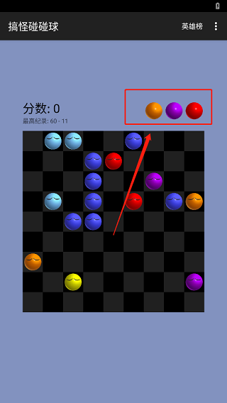 3、每次移动后如果没有成功消除,棋盘上会新增三个球;
