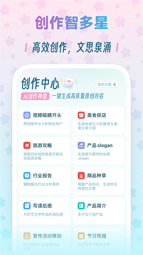 3、画面感文章:根据输入的简介,软件能帮助描绘富有画面感的文章。