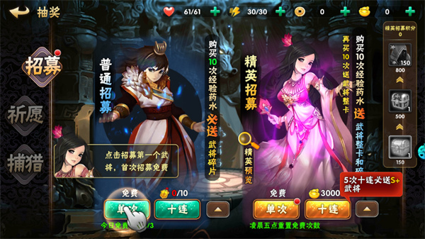 2、接着,在打开的菜单中选择招募功能。这里有两种选择:您可以进行一次性招募或是选择十连招募,取决于您个人的需求。