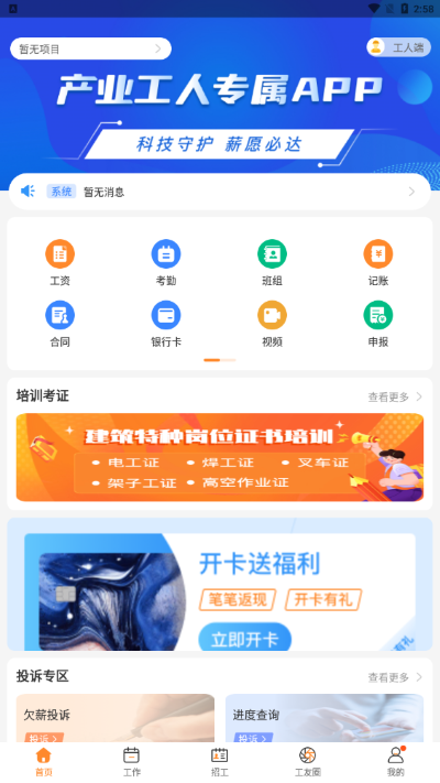 薪乐达app是一款创新的SaaS模式人力资本管理云服务系统,专为建筑业从业者设计。这个系统,目前为用户提供了一系列全面的职业服务,包括工资核对、考勤验证、电子合同管理以及在线教育等,不仅满足了务工人员对薪酬确认和职位变更的需求,也助力企业和项目进行精细化的人力资源管理。