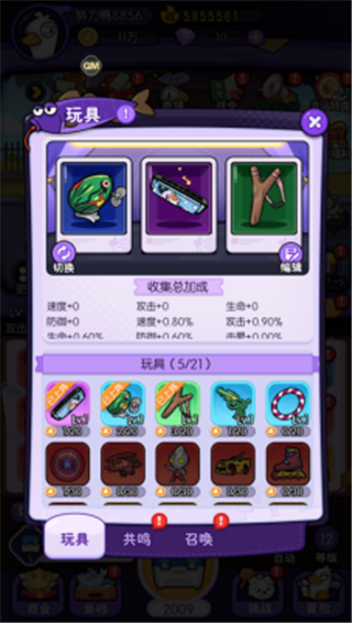上阵:最多可上阵三个玩具,为局内战斗增加额外的三个技能效果(BUFF加成)