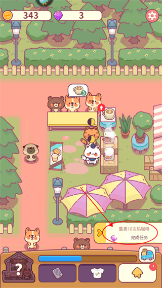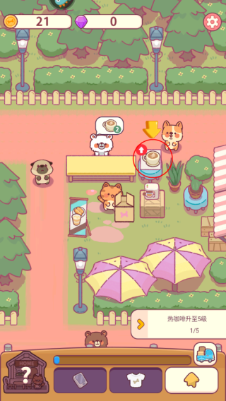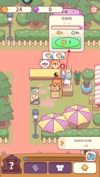 2、点击任务提示,了解完成任务的方法,例如升级热咖啡,操作咖啡旁的升级按钮