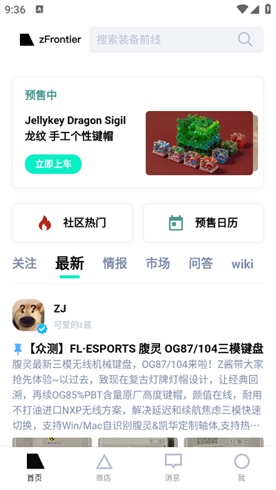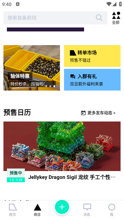 装备前线官方版是一款非常使用的数码装备交易软件,在这里汇集了来自全球各地的定制键帽和键盘,是一个专为小众装备发烧友打造的社区平台。这里不仅有着各式各样的数码产品,同时它们的详细信息也会展示在你的面前,让你无需线下找寻专门的旗舰店购买,非常方便实用!相较于传统的网上键盘购买,在这款装备前线软件中将会获得更优惠的价格,品质而言也是相对于更高,使用过的小伙伴都竖起大拇指!