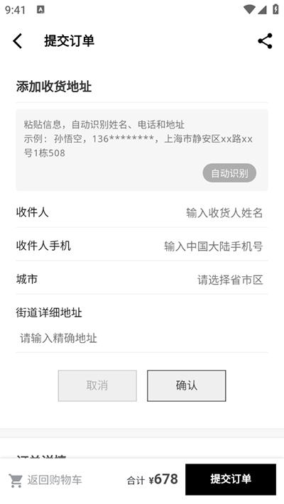 4、确认好收件人、手机号和地址,点击提交按钮就可以了。