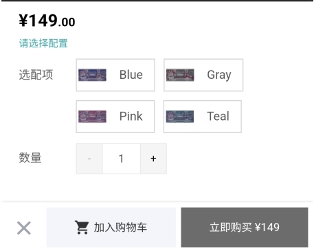 3、选择要购买的型号和数量,点击立即购买按钮;