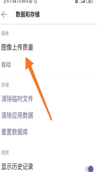 2、在设置工能中点击数据和存储,再点击图像上传质量