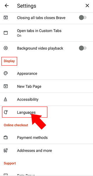 4、选择“brave's language”选项下的“Chinese-简体中文”。