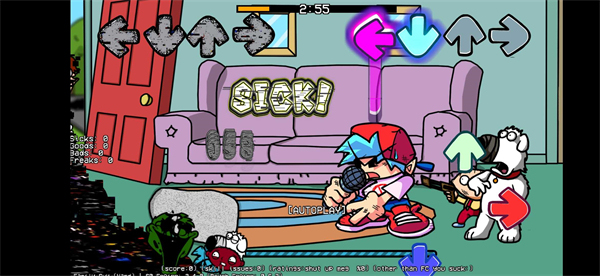 错误化恶搞之家模组是一款基于fnf周五夜放克开发的高级模组,提供了一系列独特体验,如劫后余生、闪烁和时尚价值观等。此模组对原版游戏进行了巧妙改编,例如对游戏角色进行恶搞式的创新,以及在音乐类型上的多样化改变,带给玩家全新的游戏体验。游戏玩法与原版类似,通过控制角色跟随音乐节奏按键,以积分高低决定胜负。