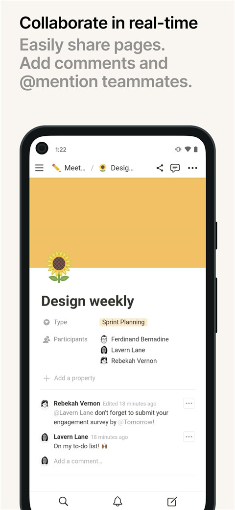 轻松共享页面,添加评论和@提及团队成员。