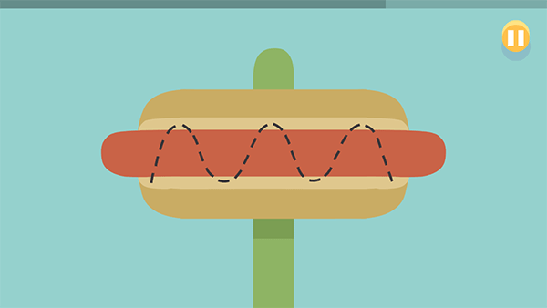玩法:玩家看见中间红色的香肠上的虚线,玩家需要用沙拉把虚线遮住。
