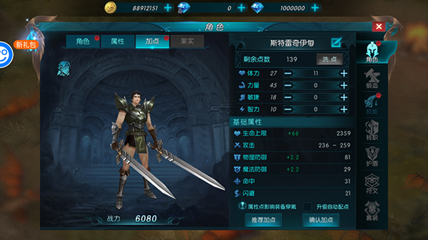 6、玩家还可以调节角色的体力、力量、敏捷等属性。