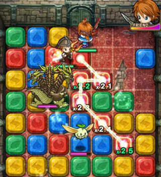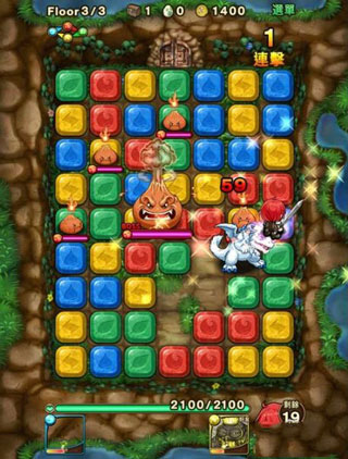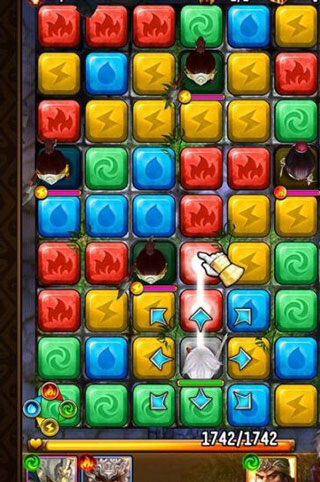 4、战斗系统,将同色方块连成一线,角色将沿着路径移动并攻击经过的敌人。