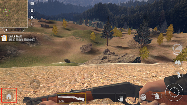 7、点击左下角的房子按钮返回主界面,整理背包后再次出发狩猎。
