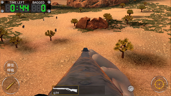 1、玩家需要精准控制瞄准,从最佳视角发射,一击必杀所猎之物,收获丰厚战利品。2、当右上角出现感叹号时,表明猎物已处于警戒状态,受到惊吓后会迅速逃离。