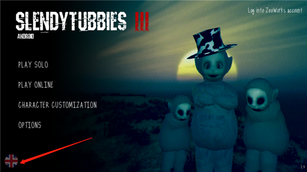 1、鬼天3官方正版游戏默认为英文界面。首次进入游戏时,点击左下角图标;