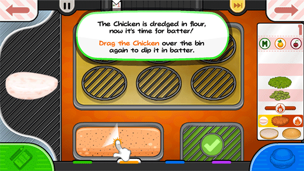 在这款老爹炸鸡汉堡店正版游戏中,鸡肉将被涂上各种面包屑和面糊后油炸至完美。为了在竞争中占据优势,Papa Louie可能会逐渐引入除鸡肉以外的更多种类的食材。