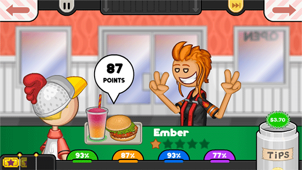 9、完成后,将餐点交给顾客并获得评分和金币。