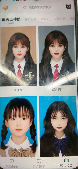 4、在照片换装模块中,可以制作证件照或选择其他风格的照片模板。