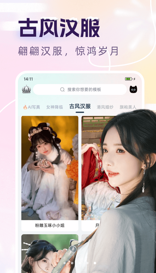 脸猫app是一款功能全面而强大的照片编辑软件,它使你的照片展现出更加引人注目的效果。该软件包含照片换装、多人换装、视频换装等三大主要功能。在照片换装模块中,你可以选择各种风格的模板,如最美证件照、古风写真、婚纱写真、旗袍美人录、宫廷记等,满足不同场景的需求。多人换装功能允许用户编辑多张照片,甚至添加配音,记录与朋友或伴侣共同度过的美好时光。