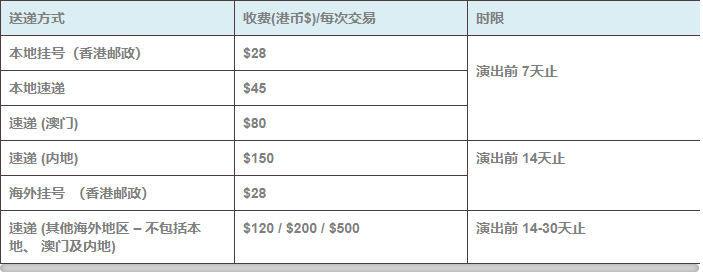 除特别声明外,各项节目的门票在开售首天同时在全港各售票处及自助售票机发售。