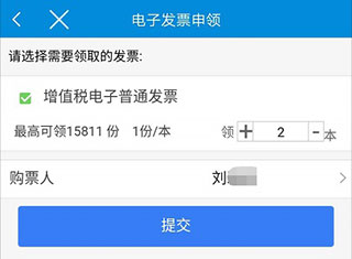 第二步:输入领取发票的份数,可直接输入数字或通过加减号调整。