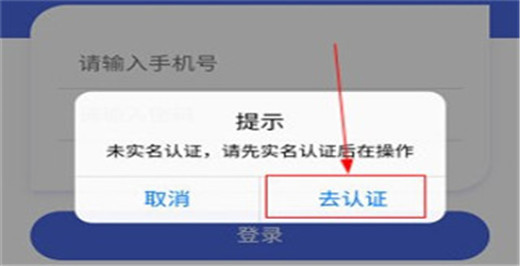 1、进入软件主页面,提示我们未完成实名认证,点击“去认证”。