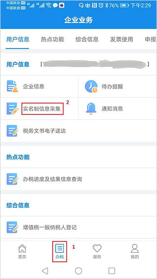 3、点击“办税”,进入“实名制信息采集”页面。