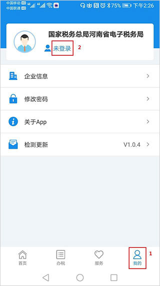 1、下载并安装河南税务app官方版,登录后进入“我的”页面。