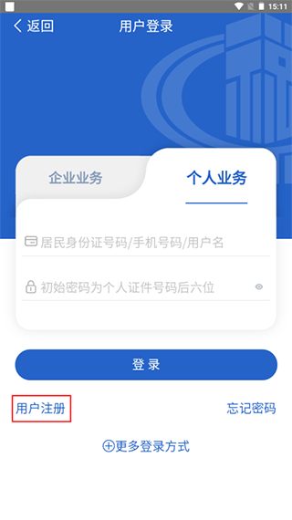 在个人业务选项中,寻找“用户注册”的按钮并点击它。