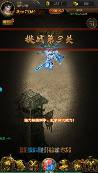 6、在关卡中,使用操作按钮控制角色战斗,运用攻击、技能击败敌人,同时躲避敌方攻击以保持生命值;