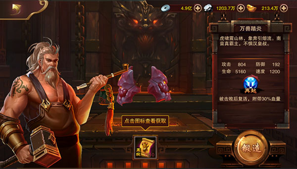 武将的专属武器需要通过锻造获得,锻造需要相应的图纸,这些图纸可以在国家传中获得。每个武将所需的图纸分布在不同的关卡。国家传每日有挑战次数限制,但每个关卡的首次通关不消耗次数。只要战力足够,玩家可以自由推进国家传的进度,然后在自己拥有的武将对应的国家传关卡刷取所需的图纸或材料。