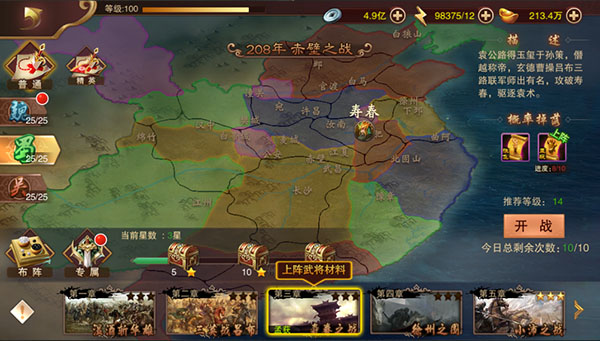 4、合理的武将阵容搭配展现策略的魅力,升级城池建立自己的势力,参与国战攻占敌方据点,争夺资源;