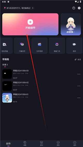 打开软件,点击开始创作