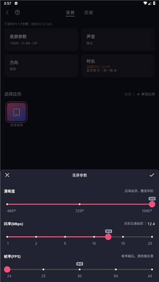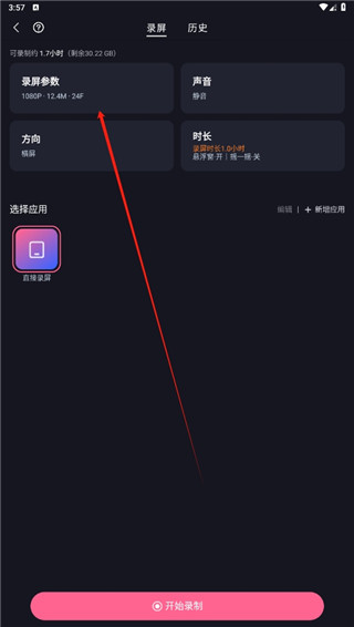 在录屏功能中,点击左上角的录屏参数