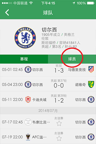 2、在数据界面中选择心仪的球队,点击球队名进入。