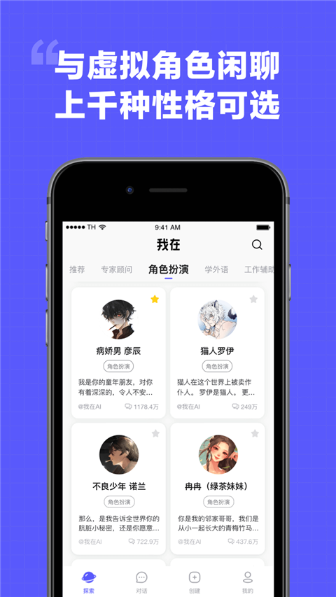 各种风格的AI角色等待与您互动,陪您度过每一个心情时刻,听您倾诉,分享快乐。