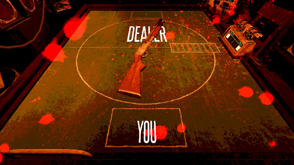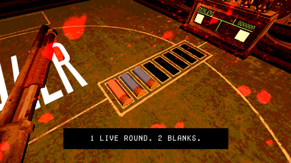 5、游戏规则类似于俄罗斯转盘,桌上放有一把散弹枪。第一回合装有三枚子弹,其中2枚为空弹、1枚为真弹。随着回合进行,真弹数量会逐渐增加;