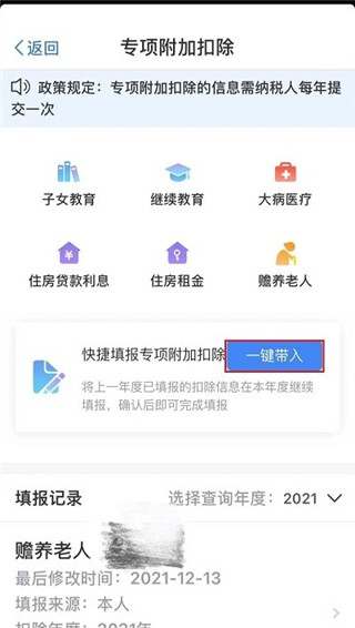 如果2022年需要新增专项附加扣除项目,先确认上一年度已申报不需要修改的项目信息后,返回首页,进行专项附加扣除填报。