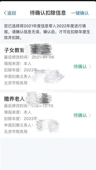 如果2022年专项附加扣除信息有变动,打开“待确认”,进行“删除”或“修改”后“一键确认”。