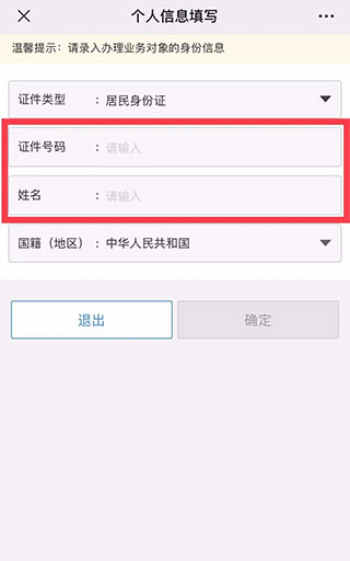 3、按照提示填写个人身份信息,确认无误后点击确认;